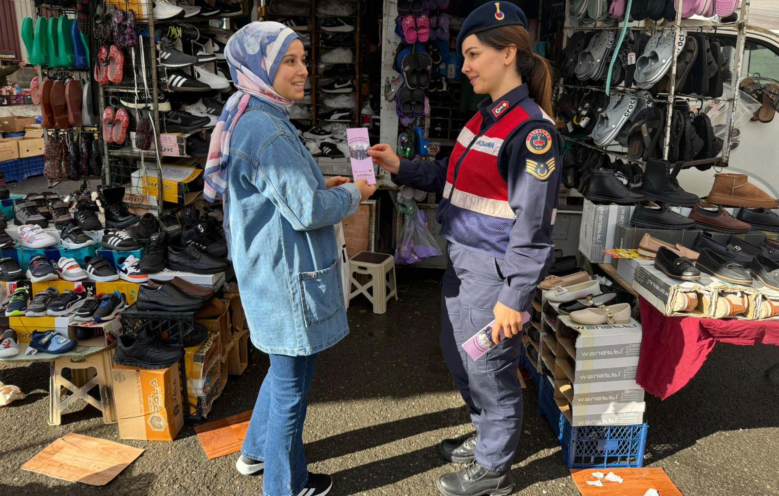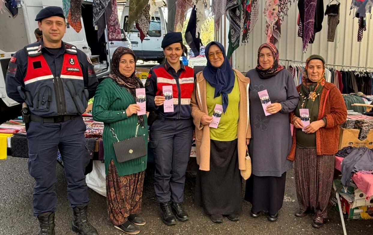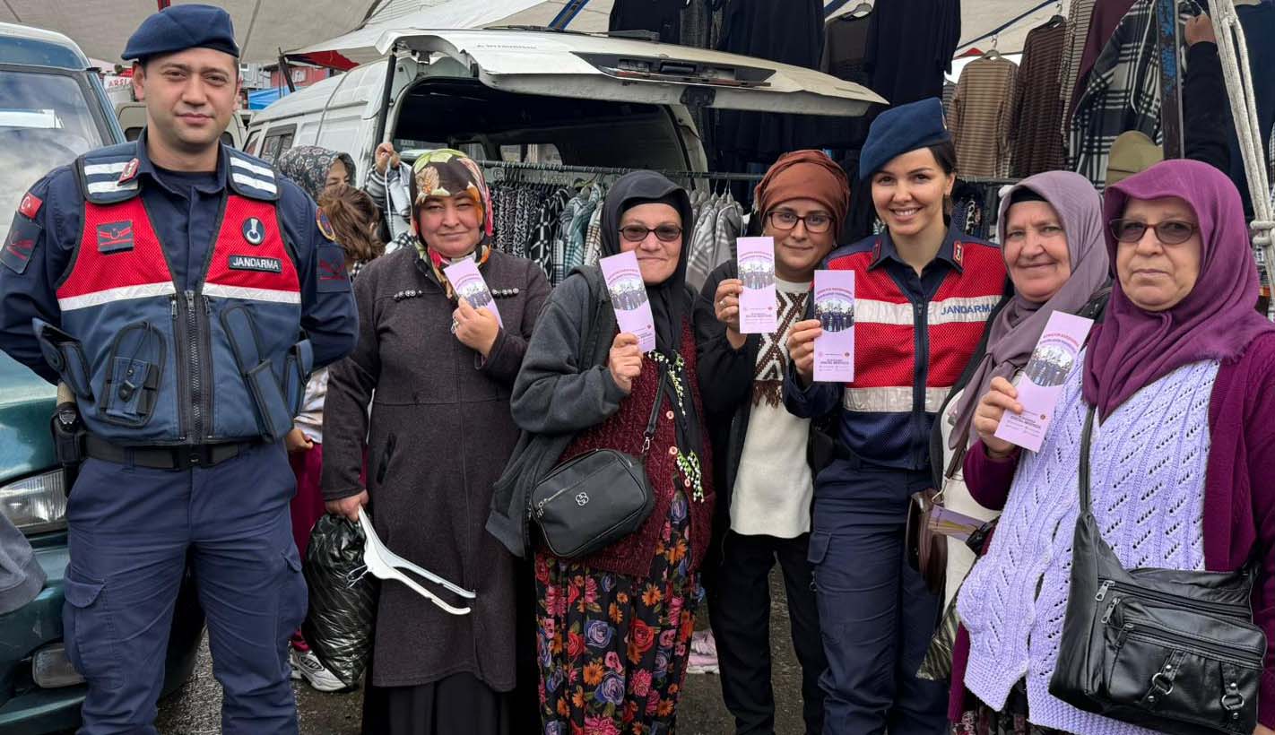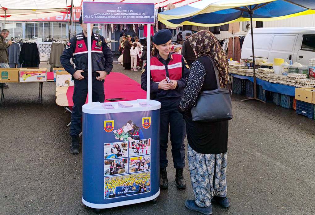 Karadeniz Ereğli İlçe Jandarma Komutanlığı, Aile İçi Şidddetle Mücadele ve Çocuk Kısım Amirliği Birimi, Ormanlı Belde Jandarma Komutanlığı'nın sorumluluk alanında bulunan Cuma pazarında kadınlara yönelik kadınların bilinçlendirme ve bilgilendirme çalışmalarını sürdürüyor.