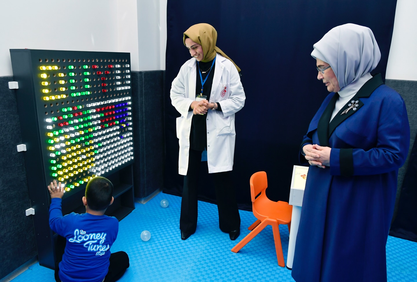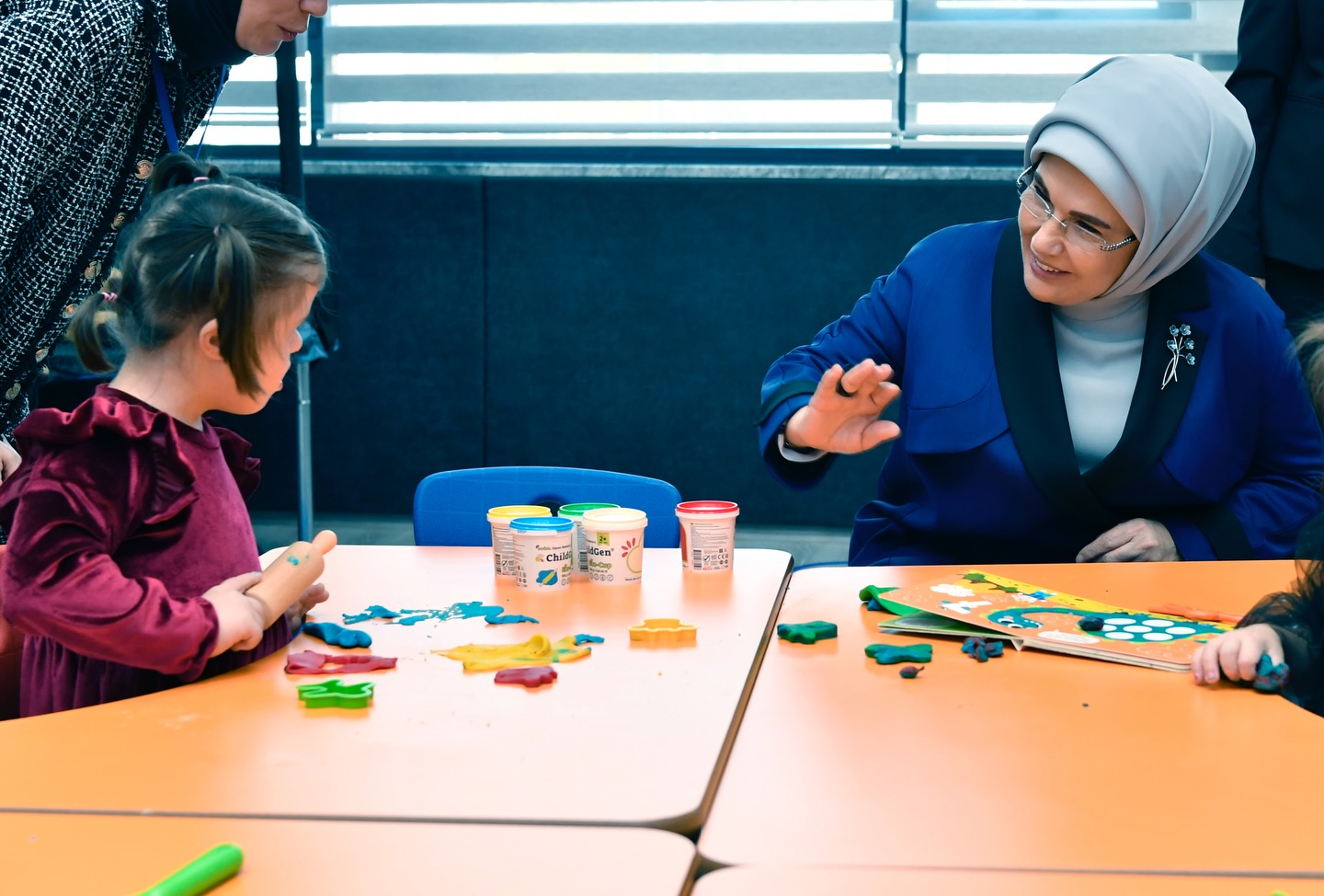 Açılış konuşmasında özel eğitim kampüsünün, iyi niyetle atılan adımların, kararlı bir vizyonun ve ortak emeğin eseri olduğunu ifade eden Emine Erdoğan, özel gereksinimli bireylerin haklarını koruyacak sistemlerin geliştirilmesinin bir lütuf değil, temel bir hak olduğunu vurguladı.